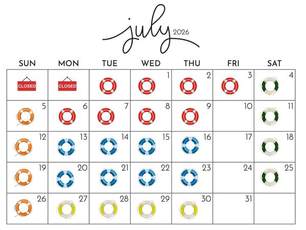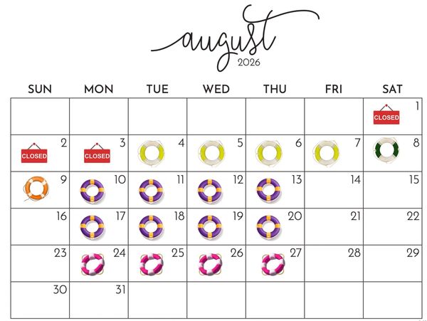 Yellow- July 27th to August 7th (Closed the 3rd)